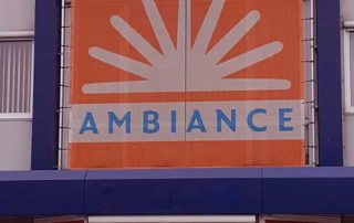 Full-colour spandoeken, 510 grams Bizonyl, inclusief randversteviging en stalen ringen om de 30 cm.